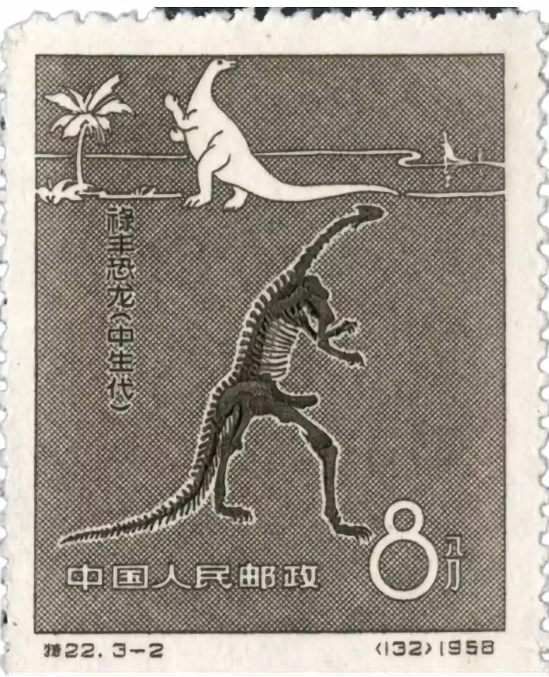 1958年,中华人民共和国邮电部邮政总局发行了一套三枚古生物纪念邮票,其中一枚便是许氏禄丰龙的骨架和复原图,许氏禄丰龙也成为全世界第一个登上邮票的恐龙。