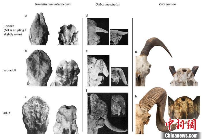 她说,和政羊的个体发育研究还能为其系统发育关系的探讨提供一定线索。尽管成年和政羊与成年乌米兽的角心差别很大,但在幼年或亚成年时期,两者的角心都明显侧扁,尖端钝圆,着生于眼眶之后,并朝向后上方生长,具有很多相似的特征。