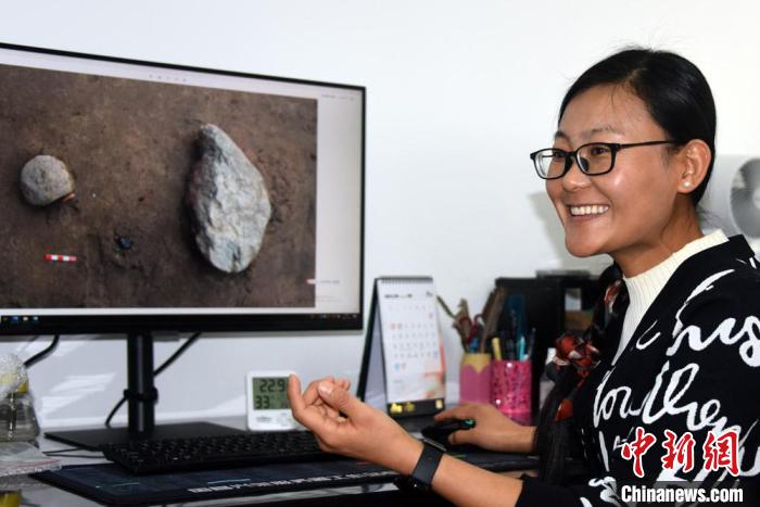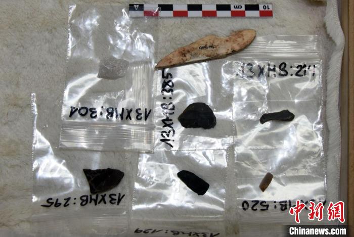 本次研究的赤铁矿加工遗存。 中新社记者 孙自法 摄