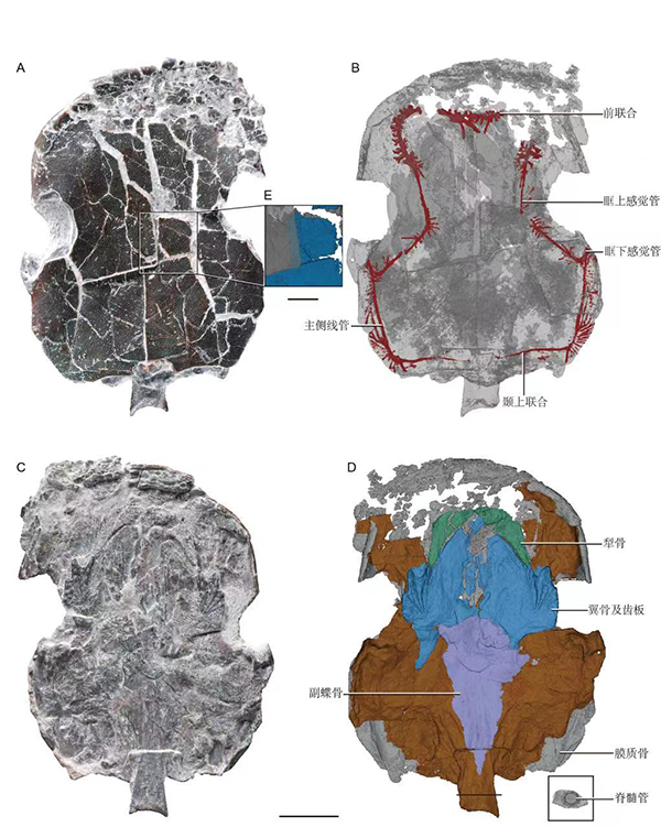 “齿板是肺鱼的标志性结构,一般在口腔内占据相当大的面积、有相当的厚度,同时咬合面有小齿突起,如同磨盘一般,可以磨碎坚硬的带壳食物,如节肢动物或腕足动物。”罗彦超解释。