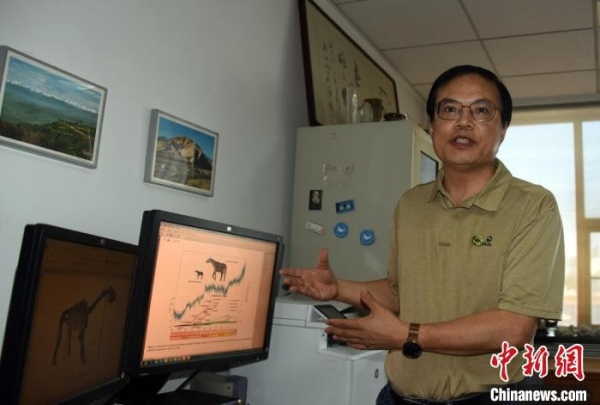 邓涛研究员科普解读巨犀演化最新研究成果。中新网记者 孙自法 摄