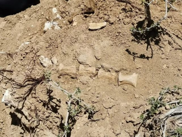近日,根据当地群众提供线索,在温泉县城东北昆得仑牧场的一处山坡上发现较为密集出露的哺乳动物化石。