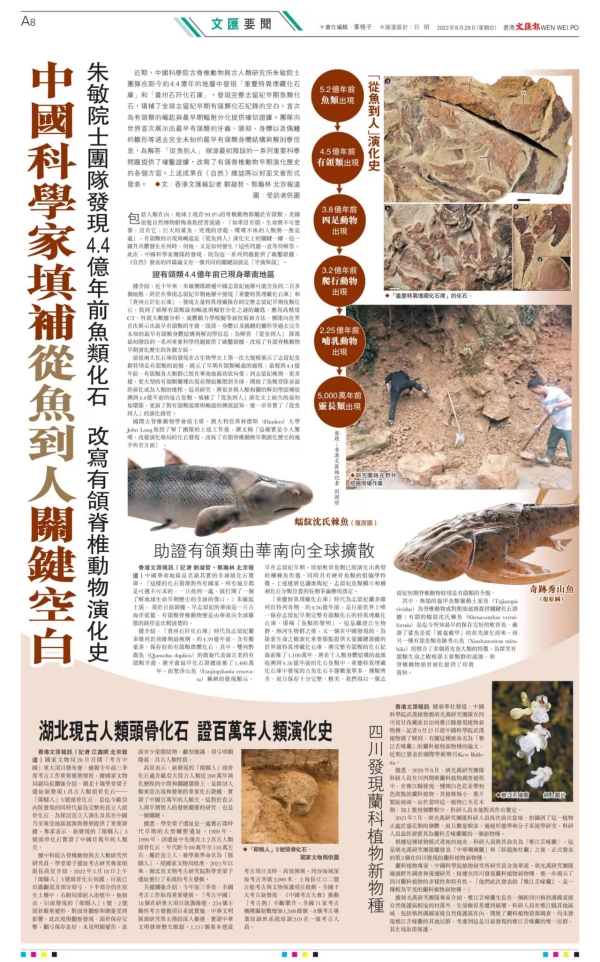 【香港文汇报】中国科学家填补从鱼到人关键空白
