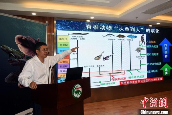 朱敏院士科普解读“从鱼到人”探源研究最新成果。 中新社记者 孙自法 摄