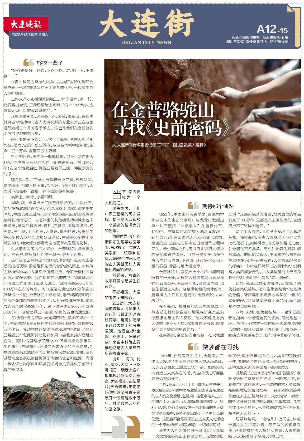2022年,大连新闻传媒集团《最美大连行》节目组历时春秋两季,用镜头记录下这片大地上的考古发现。地理坐标:金普,骆驼山。记录对象:来自中科院古脊椎动物与古人类研究所的考古专家。