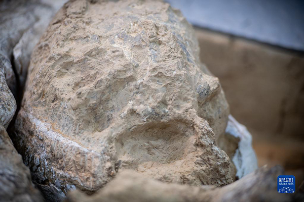 12月3日拍摄的“郧县人”3号头骨化石。新华社记者 伍志尊 摄