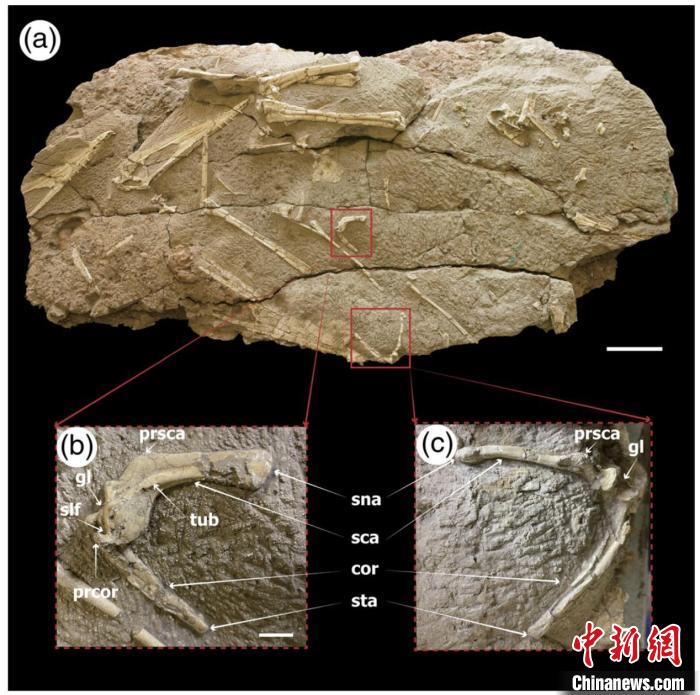 论文共同第一作者、中山大学生态学院博士后陈鹤指出,翼龙缺少叉骨、肩胛骨与背椎构成关节,且有愈合的肩胛乌喙骨等特征,这些则明显与鸟类不同。其肩胛骨与乌喙骨在个体成年之前就已完全愈合,代表了翼龙飞行演化过程中独特的肩带适应,也表明翼龙并未如鸟类一样,伴随飞行的演化而出现分离的肩胛-乌喙骨关节。