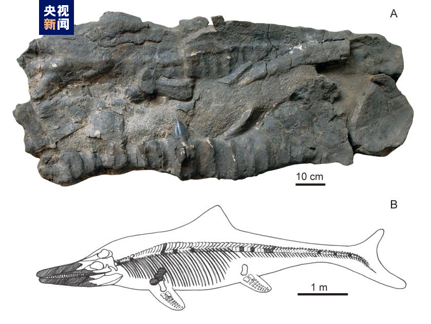 喜马拉雅鱼龙化石及复原图