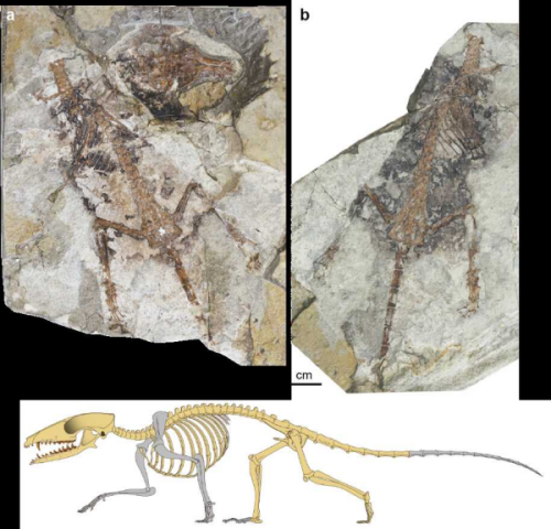 梦幻小兽正型标本及复原图。(中国科学院古脊椎所供图)