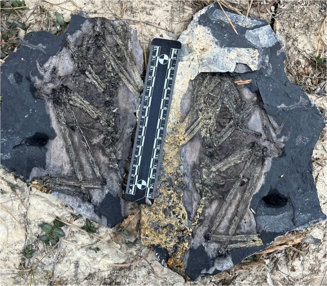 “我刚刚从发掘点的山坡上下来,就被一通电话叫了回去。”中国科学院古脊椎所研究员、联合团队领队王敏回忆,当时本以为是队友恶作剧,没想到爬上山一看,一件保存在两块对开石板上的疑似鸟翼类恐龙化石正躺在队员手中。