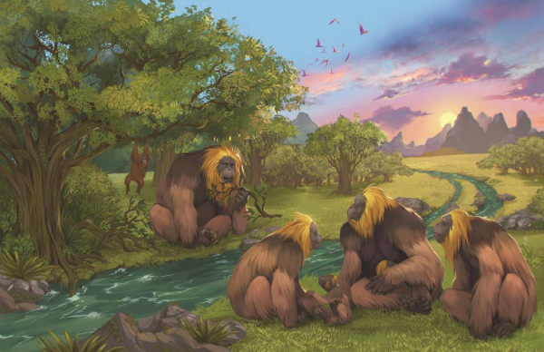 步氏巨猿生活场景复原图。(Garcia/Joannes-Boyau绘制)