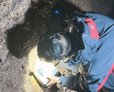 那么柳江人到底出土自通天岩洞穴地层沉积序列中的哪一层呢?经过仔细观察,团队成员在柳江人左侧股骨的髓腔中发现了红棕色的黏土质沉积物,在颅骨的鼻腔中也发现了同样颜色和质地的沉积物。