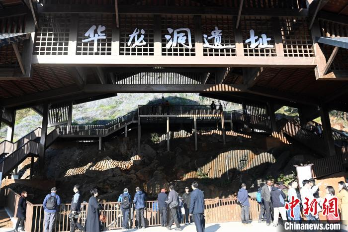 12月6日,2024华龙洞遗址学术研讨会与会中外专家学者考察华龙洞遗址。中新网记者 韩苏原 摄