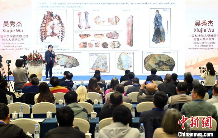 12月6日,2024华龙洞遗址学术研讨会上,中国科学院古脊椎动物与古人类研究所吴秀杰研究员介绍该遗址最新发掘进展。中新网记者 韩苏原 摄
