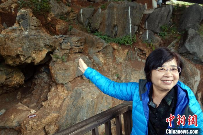 华龙洞遗址1号地点,吴秀杰研究员向记者介绍古人类化石及相关遗存发掘研究情况。中新网记者 孙自法