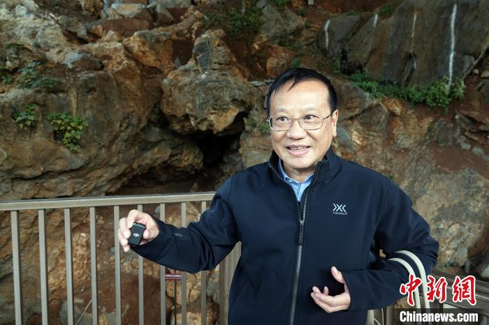 华龙洞遗址1号地点,刘武研究员向记者介绍该遗址10多年发掘研究收获。中新网记者 孙自法 摄