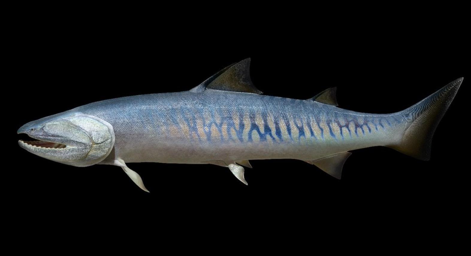 始骨鱼(中)和宏颌鱼三维复原。Nature封面