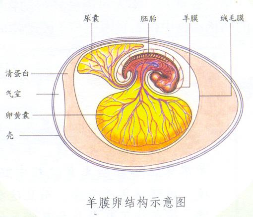 小词典 羊膜卵的主要特点是在胚胎发育过程中产生羊膜、绒毛膜和尿囊膜。羊膜腔中充满了羊水,羊水保证了胚胎发育过程中胚胎本身的水域环境,使胚胎免于干燥;而且这些胚膜构成的小环境,还保证了胚胎与外界的气体交换,对胚胎起到支持和保护作用。在羊膜卵外,还包有一层钙质的硬壳或不透水的纤维质卵膜,能防止卵内水分的蒸发、避免机械损伤和减少细菌的侵袭。 卵生:受精卵在母体外发育,发育过程所需营养均来自卵中的卵黄。见于多数无脊椎动物、头索动物、圆口纲、大部分鱼类、两栖类、爬行类、全部鸟类和少数哺乳动物(如鸭嘴兽)。 胎生:受精卵在母体内(多在子宫内)发育,胎儿发育成熟或发育到一定程度后产出,胚胎在发育过程中从母体获取营养(主要通过胎盘)。 有袋类的幼儿未发育成熟即娩出,在育儿袋内继续发育。 卵胎生:受精卵在母体内发育,但不从母体获取营养,其营养仍靠自身的卵黄。见于部分鱼类、部分有尾目两栖动物和部分爬行动物。 | | |