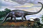 中生代的陆地是恐龙称霸的大地。对许多人来说,一提到恐龙,脑中就会涌现出那些长着小脑袋、长脖子和粗壮四肢的古代庞然大物。在遥远的中生代,地球上确实四处漫游着许多身体无比巨大的恐龙,尤其是蜥脚类恐龙,像发现于美国的梁龙和产自我国的马门溪龙,它们的体长都达到了20多米。不过,这还不算是最大的恐龙。一种名叫阿根廷龙的蜥脚类恐龙,体长有30米,体重到达100吨。19世纪的时候,科学家们在美国发现了一些恐龙的脊椎骨残片,他们据此推测这种恐龙的大小,得出一个惊人的结论:这种恐龙体长约40-60米,体重有100~150吨,堪称超级“巨人”。 恐龙世界除了“巨人”之外,还有许多“侏儒”。许多种恐龙大小只有l米左右,像发现于德国的肉食性美颌龙和我国的以植物为食的热河龙。科学家们最近又发现了更小的恐龙~叫小盗龙。它的头只有4厘米长,满嘴芝麻大小的牙齿,身体全长也不过40厘米左右。 看着巨型恐龙那小小的头颅,臃肿的身体,许多人猜测恐龙一定非常愚笨。巨型蜥脚类恐龙的智力确实比较低下,这可以从它们脑颅相对身体的大小推断出。不过,科学家们发现一些小型的兽脚类恐龙有很高的“智商”。有人研究了一种叫伤齿龙的小型猎食龙的智力水平,发现这种恐龙非常聪明,并以此推测如果恐龙没有在6 500万年前灭绝的话,可能会进化成一种叫做“恐人”的高智商动物。当然,从科学的角度讲,这种假说是不成立的。有些小型恐龙虽然很聪明,也只是相对而言。它们的智力水平还没有超过鸟类,更不用说人类了。 恐龙变成了鸟类是大多数科学家赞成的一种进化假说,也有很多化石证据。其中一个有力的证据,就是一些恐龙在向鸟类进化的过程中具有了鸟类的孵卵习性。说起来,这其中还包含着一个曲折的故事。20世纪20年代的时候,美国科学家在蒙古的戈壁沙漠中发现了一种奇特的恐龙化石,这种恐龙没有牙齿,长着长长的脖子和善于奔跑的腿。由于它的化石骨架保存在一窝破碎的恐龙蛋附近,科学家们猜测这种恐龙可能是在偷食其他恐龙的蛋的时候意外死亡并形成化石的,因此,他们把这种恐龙称为窃蛋龙。70年后,有人发现窃蛋龙其实并不是在偷蛋,而是趴在自己生的蛋上孵卵,窃蛋龙这才得到“平反昭雪”。 镰刀龙是窃蛋龙的近亲,它有着一副非常奇怪的长相:它的头像食草动物,可是前肢又像凶猛的食肉动物,长有弯曲尖锐的大爪子,它的肚子臃肿而大,脚则又宽又短,堪称恐龙世界中的“四不像”。其实,尽管它的外形奇特,但它和小巧的鸟类还有着很近的亲缘关系。我国辽西发现的一种名叫北票龙的镰刀龙,身体上长着和鸟类羽毛相似的结构。 当然,恐龙当中最有名的还要属霸王龙。它是恐龙世界中的“老大”,有关它的争议也最多。有人认为它徒有虚名,根本就不会主动猎取食物,而是依赖吃腐尸为生;有人则推测它非常凶残,牙齿上可能还有剧毒;有人猜想它行动很缓慢,也有人认为它的奔跑速度很快。在分类上,有人把它和侏罗纪时繁盛的大型肉食龙放在一起。多数人却认为,它和自垩纪时繁盛的小型肉食类恐龙亲缘关系近。不管怎么样,霸王龙是当之无愧的陆地霸王。 鸟臀类恐龙是恐龙家族的另外一个支系。这一家族包括我们熟悉的鸭嘴龙、三角龙、剑龙和甲龙。顾名思义,鸟臀类恐龙应该有一个像鸟类一样的臀部(科学术语应该叫腰带骨骼),那么它们是不是和鸟类有什么亲缘关系呢?其实,它们和鸟类没有关系,而且其腰带虽然外形上和鸟类相似,但解剖结构上却不同。 和蜥臀类恐龙一样,鸟臀类恐龙也是形态各异,大小不一的。在我国发现的山东龙的站立高度超过9米,是鸟臀类恐龙当中的“巨人”,而一件被命名为辽宁龙的恐龙标本,全长不超过40厘米;剑龙身体的背部,有两排粗大的甲板;最近我国辽宁发现的一种鹦鹉嘴龙的尾巴上则长着像长长的刚毛那样的结构。它们都是鸟臀类恐龙。 恐龙的奇特不仅表现在外形上,还体现在生理上。科学家们发现,恐龙可能是温血动物。我们知道,恐龙在分类上被归入爬行动物纲,应该是冷血动物,但一些科学家发现,恐龙的生长速率远远高于其他爬行动物,接近温血动物的水平。还有的科学家发现,一些大型恐龙能够生活在寒冷的极地,这些发现都为恐龙是温血动物提供了证据。最近,美国科学家在((科学》杂志上报道了一种具有类似温血动物心脏构造的鸟脚类恐龙。他们认为,这为恐龙温血论提供了最好的证据。不过,这些证据也遭到了另外一些科学家的置疑。从目前的证据来看,恐龙可能是一类介于冷血动物和温血动物之间的过渡性动物,代表着生物演化史中的一个重要“缺失环节”。 (1)长有羽毛的恐龙 带羽毛恐龙化石的发现始于1 996年9月。当时有人发现了一种奇特的动物化石:它个体大小类似家鸡,头很大,满嘴长着带有小锯齿的尖锐牙齿,前肢非常短,尾巴却出奇地长;在这个动物的背部,从头到尾长着毛状的结构。这种被命名为“中华龙鸟’’的动物就是世界上发现的第一种长着原始羽毛的恐龙。 l 999年5月,科学家们报道了一种叫北票龙的动物,这是继中华龙鸟以后发现的第二种保存毛状皮肤结构的恐龙。它的发现表明,这种毛状结构确实属于原始羽毛。不仅如此,科学家们推测包括霸王龙在内的许多恐龙,可能已经不再像冷血的爬行动物那样长着鳞片,而是体披着这种原始羽毛,更像