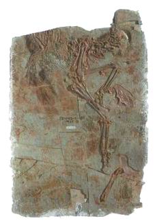 中生代没有人类做伴的鸟类一点也不感到孤独。因为与它们争奇斗艳的还有身披羽毛的恐龙,以及在树枝间飞舞的蜻蜓。然而,凶猛的火山会在顷刻间将这美好的世界吞噬。如今被古生物学家视为“中生代鸟类研究之圣”的热河生物群,就曾有过如此险恶的经历。 (1)水与火的世界 在距今大约1.25亿年前的中生代,更确切地说就是白垩纪的早期,世界上不少地区都被海水淹没了,但在中国的北方、蒙古、朝鲜、日本和西伯利亚东部的外贝加尔地区,却是少有的例外。这里的许多地区被淡水所覆盖,生活了一群既古老又充满了勃勃生机的动植物群落。当时的这些地区,气候温暖,植被繁茂,可以说是山清水秀,龙飞“燕”舞,湖泊纵横交错。不幸的是,一派繁荣景象的后面,却潜伏着一次次巨大的灾难:喷薄而出的火山“隆隆”作晌,火光映照清澈的湖泊,飞沙走石不仅笼罩着天空,而且释放出致命的毒气。飞禽走兽、花鸟鱼虫顷刻间命归黄泉,被深深地掩埋,石化成化石。l亿多年的斗转星移和地壳变迁,将这些古老的生命又重新暴露于地表,并展现在人类的眼前。这一段交织了绚丽和悲壮生命历史的故事,讲述的便是今天闻名于世的热河生物群。 热河生物群是东亚地区所特有的一个淡水生物群。我国辽宁省的西部地区,保存了这个生物群的岩石和地层出露最好,化石也特别丰富,因此一直是研究该生物群的经典地区。特别是从20世纪的90年代开始,在辽西地区发现了一系列精美保存、并且十分丰富的早期鸟类化石。随后,重要的化石发现便一发而不可收,真所谓一浪高过一浪。原始的哺乳动物、身披羽毛的恐龙、原始的被子植物、采花的昆虫等等,好戏连台,无一不引起国际上的轰动。热河生物群的研究,也因此成为当前国际古生物学研究的热点和前沿领域之一。 (2) 白垩纪的大鱼池 在热河生物群中,鱼类化石是研究最早、数量最为丰富的脊椎动物。其中,有一种被叫做狼鳍鱼的化石研究历史最长,最有名气,它被鱼类学家们认为是现存的舌齿鱼类的远古的祖先。在一块石板上出现几百条狼鳍鱼,不是什么少见的现象。另外一类鱼类叫中华弓鳍鱼,它的背鳍形状有些像拉开的弓,因此得名,它的后裔弓鳍鱼一直延续到现在。还有一些比狼鳍鱼还要原始的鲟形鱼类,它们是今天长江里生活的珍稀动物中华鲟和白鲟的祖先。北美的匙吻鲟也是它们的后裔。这些古老的鲟鱼化石从l亿多年前便开始出现,到了今天就可以被称为活化石了。值得一提的是,热河生物群中的鲟鱼类虽然相对个体较大,最大的可达l米多,但比起今天长江里的鲟鱼来就不算什么了。 (3)跳跃的古蛙 热河生物群发现的两栖类化石,包括无尾的蛙类和有尾的蝾螈类。在已经发现的古蛙中,像三燕丽蟾、北票中蟾等化石都是亚洲,乃至世界上发现的保存最完整的中生代古蛙化石。这些古蛙化石从外表看,和我们今天见到的青蛙没有区别,但对专业人员来说,它们却是形态十分原始的古蛙。有尾的两栖类在热河生物群中发现的数量特别多,往往以成百上千计,还包括了由幼年向成年发展的不同阶段的化石,因此可以帮助科学家研究古代蝾螈个体发育的过程。 (4)水中游弋的爬行动物 热河生物群中发现的爬行动物种类十分丰富,包括龟鳖类、蜥蜴类、离龙类、恐龙和翼龙。其中,离龙类属于原始的爬行动物,它们长着长尾,脚上有蹼,主要生活在水中,是一种会游泳的爬行动物。在这些水生的爬行类中,凌源潜龙有一个很长的脖子。更为奇特的是,短短几年问,已经在辽西的凌源、义县等地发现了成千上万的凌源潜龙标本,它们个体大小差距很大,长度从几厘米到几米。同一石板上常常可以见到几件标本同时保存。 (5) 翼龙--滑翔飞行的爬行动物 1.2亿年前的辽西上空,不仅有许多美丽的鸟类,还有另外一类飞行的脊椎动物,它们就是翼龙。这些动物,飞行靠的不是羽毛,而是翼膜,所以进行的是滑翔式的飞行。它们的两翼展开后的宽度可以达到几米,因此是当时空中的主宰。已经发现的翼龙都有一根很短的尾巴。非常有趣的是,一些翼龙的身体上布满了密密麻麻、毛发一样的东西。 (6) 与龙共舞--走进色彩斑斓的恐龙世界 辽西“白垩纪公园”中,最引入注目的是各色各样的恐龙。鹦鹉嘴龙是我们从这里结识的第一种,因其嘴巴像鹦鹉而得名,它是一种两足行走、靠吃植物为生的恐龙。吃植物的恐龙还有锦州龙,这是一种禽龙化石,个头很大,可以有6~7米长,它的一些特征非常接近鸭嘴龙类。 恐龙的身体上有没有羽毛几年前提这个问题,可能还会被人认为是痴人说梦,而今天,已经有了一个肯定的答案。辽西白垩纪的恐龙公园正是世界上惟一一个拥有带羽毛恐龙的地方。让我们记住这些恐龙的名字:中华龙鸟、北票龙、中国鸟龙、原始祖鸟、尾羽龙、小盗龙。这些带羽毛的恐龙都属于肉食龙类。这并不说明它们都是肉食性动物,实际上,尾羽龙就是吃植物的。 带羽毛恐龙的世界是多姿多彩的。恐龙为什么要长羽毛,有人说是为保温,也有人认为是为了装饰得漂亮,好吸引异性的注意。如果真是如此,那么这些恐龙一定把自己装扮得和鸟类一样美丽。看着鸟类在树梢悠闲的景象,小盗龙也忍不住爬上了树顶,享受在地面不曾体验过的另外一种生活。 (7)原始的哺乳动物 哺乳动物虽然在地质历史上比鸟类等出现得早,但到了白垩纪的早期,它们依