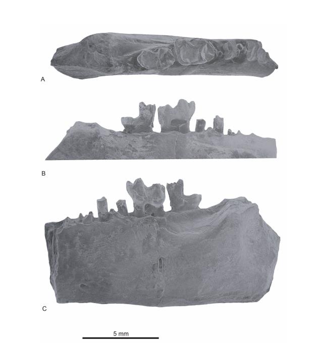 道森曙猿的齿根或齿槽的左齿骨残段