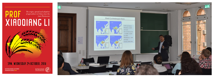 近年来,欧亚大陆古人类学、考古学以及古环境研究方面的新材料和新成果不断涌现,为认识过去人类演化及其环境适应提供了新视角。中科院古脊椎所和德国马普人类历史科学所在欧亚地区都已开展大量野外考察及科学研究工作,有许多共同关注的科学问题。2018年10月22-25日,我所李小强研究员、周新郢副研究员、赵克良副研究员及沈慧博士生一行4人,赴德国马普人类历史科学研究所进行访问和学术交流,李小强研究员应研究所邀请邀做了题为”The origin, spread and adaption of agriculture in China since the Late Pleistocene”主题学术报告,系统介绍了东亚和中亚地区晚更新世以来农业起源、扩散和适应等方面的最新研究成果。