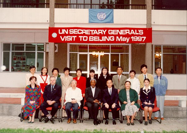 1997年5月联合国秘书长安南访华时与教科文驻京办工作人员合影(作者在后排右1)