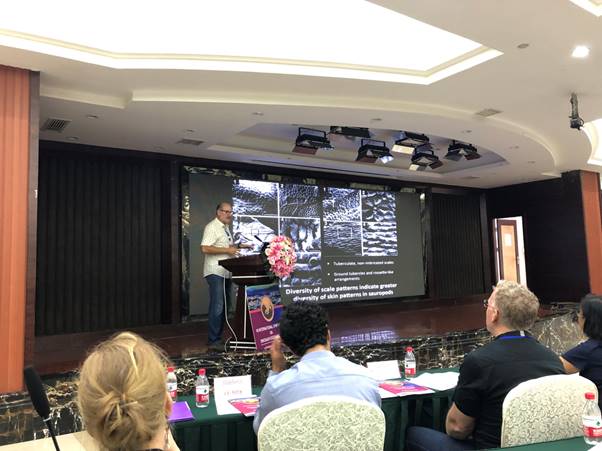 中国科学院古脊椎动物与古人类研究所成立90周年的系列学术活动之一——第7届恐龙蛋与恐龙幼体国际学术研讨会暨郧阳恐龙专题研讨会于2019年8月18日在湖北省十堰市拉开帷幕。此次会议由中科院古脊椎所与十堰市郧阳区人民政府联合主办。来自美国、德国、法国、韩国和俄罗斯的10余名国际知名学者,以及来自全国各科研院所、高校、文博系统10多家单位的40余名国内同行参会,既有为学科发展打下基础的老一辈科研工作者,也不乏年轻新锐。开幕式上,徐星副所长作为本次会议学术委员会主席致开幕词。