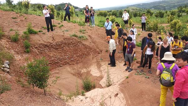 与会代表在会后赴西王村恐龙蛋化石点和青龙山国家地质公园进行地质考察,了解地质概况,在一处自然暴露的剖面上又清理出了10余窝恐龙蛋化石。