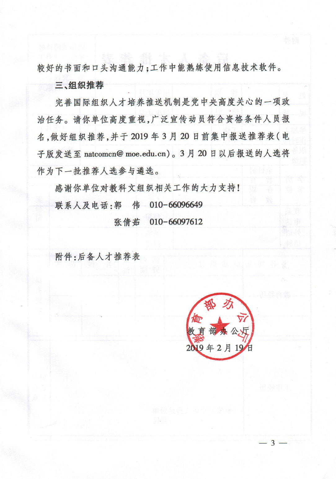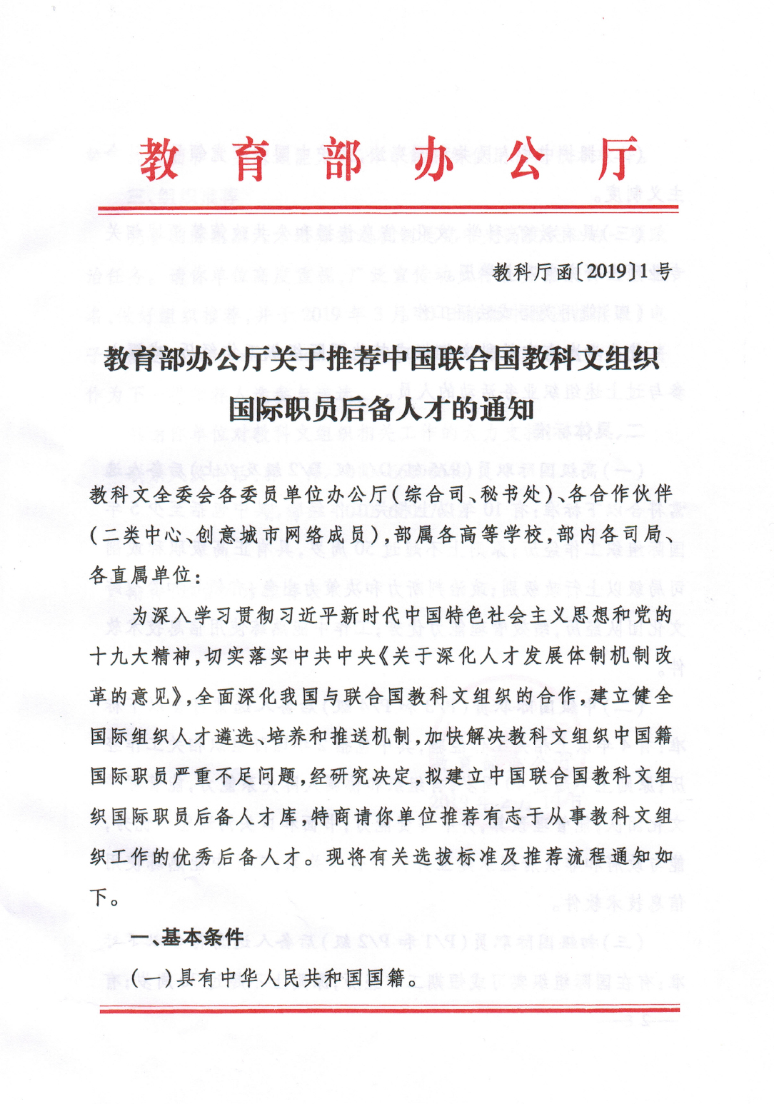 转发“教育部办公厅关于推荐中国联合国教科文组织国际职员后备人才的通知”