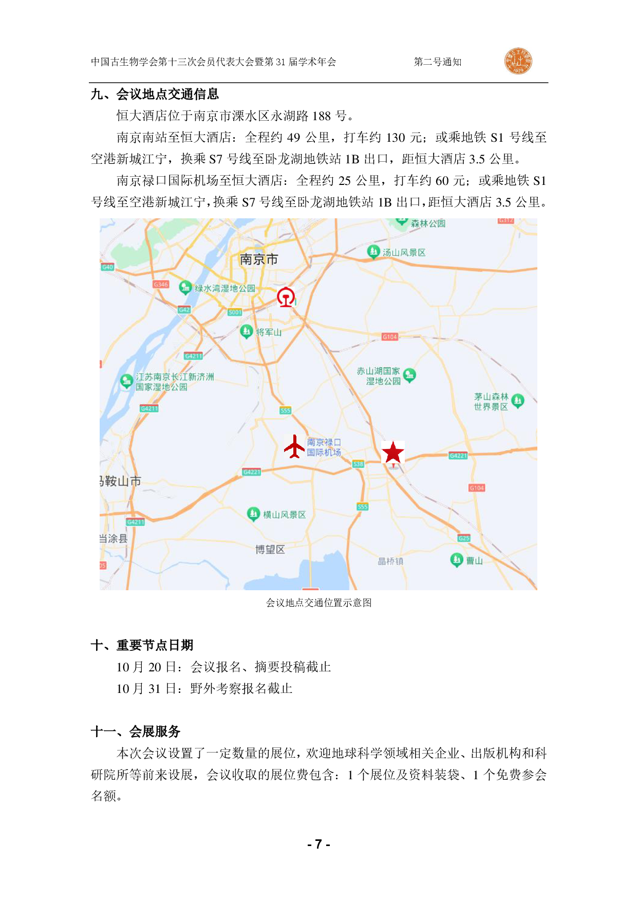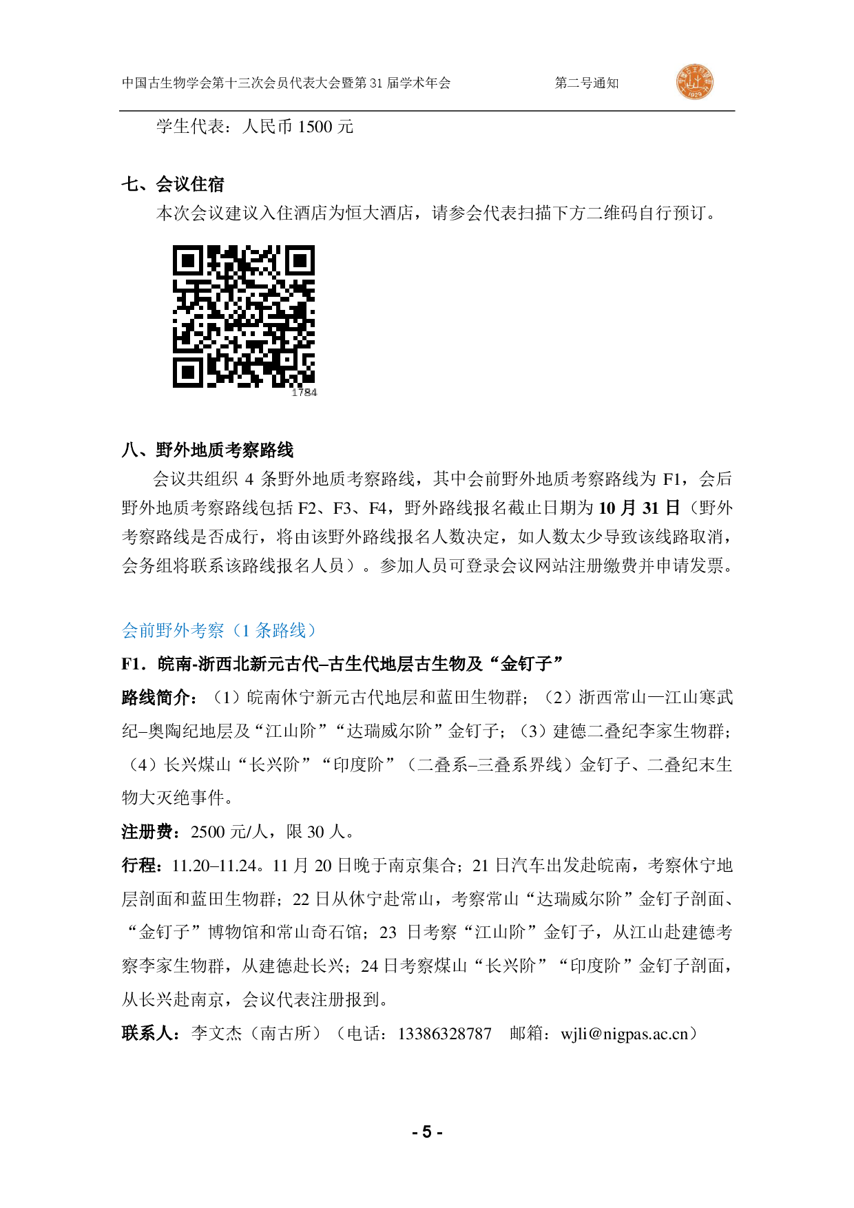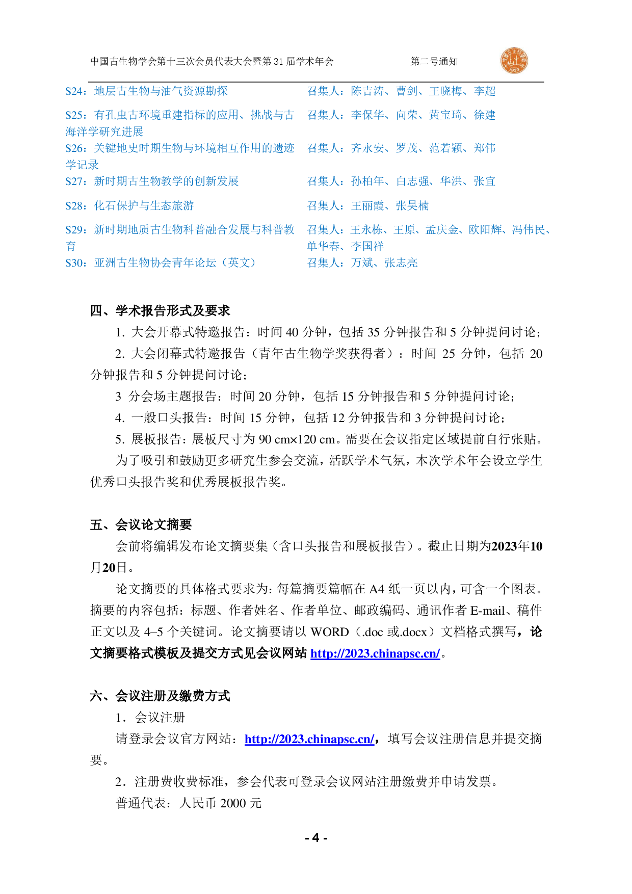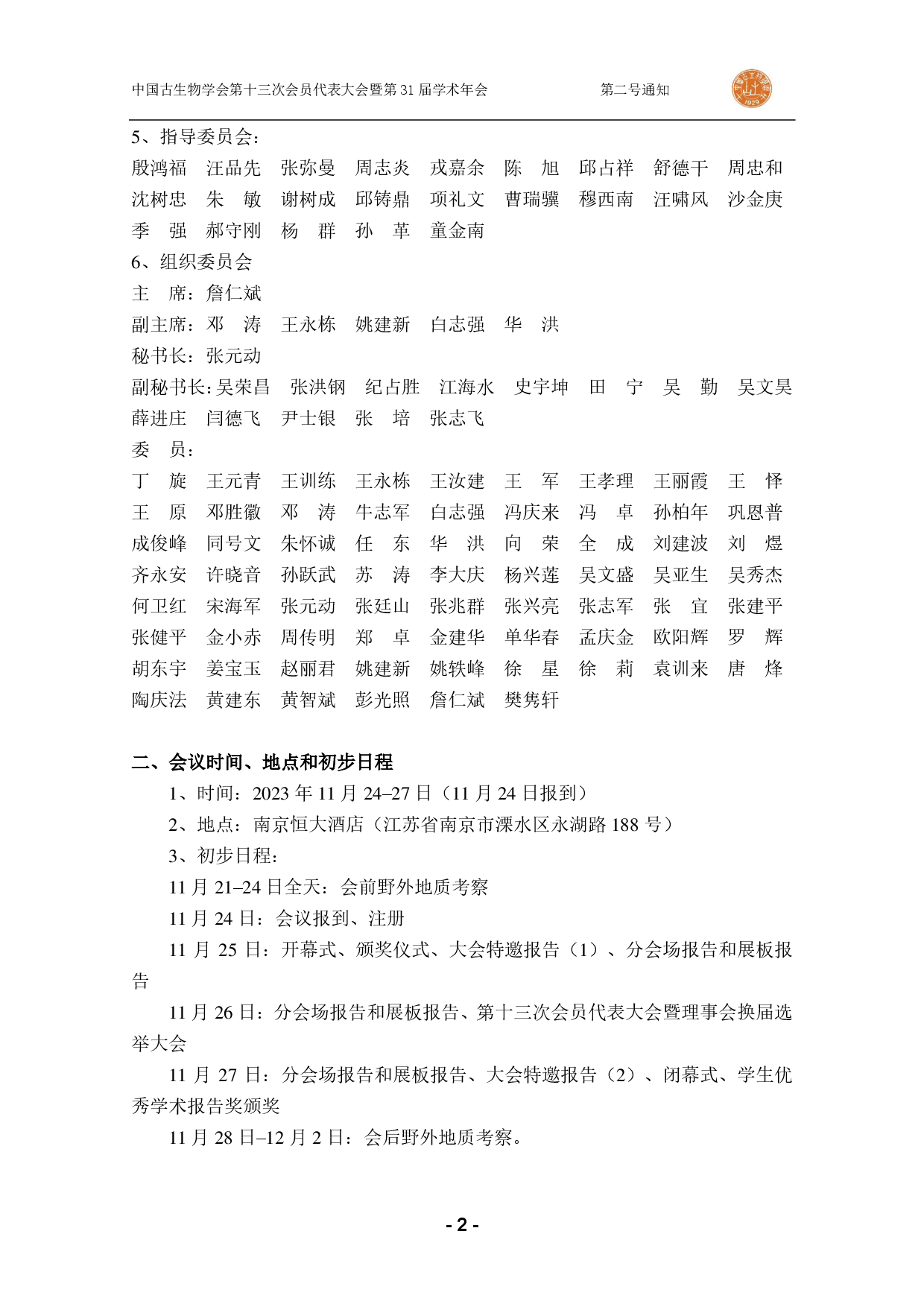 第二号会议通知-中国古生物学会第十三次会员代表大会暨第31届学术年会(第二号通知)