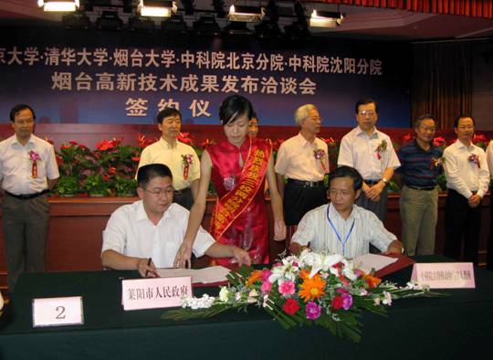 8月30日,在烟台市举行的北京大学、清华大学支援烟台大学建设委员会第十次会议暨三校两分院烟台高新技术成果发布洽谈会上,我所高星副所长与莱阳市邹常厚副市长分别代表中科院古脊椎所和莱阳市政府签署了合作协议,我所汪筱林研究员参加了签约仪式。此前,莱阳市邹副市长一行还专程到古脊椎所,与周忠和常务副所长、高星副所长和汪筱林研究员等就今后双方的合作进行了广泛的交流和协商。