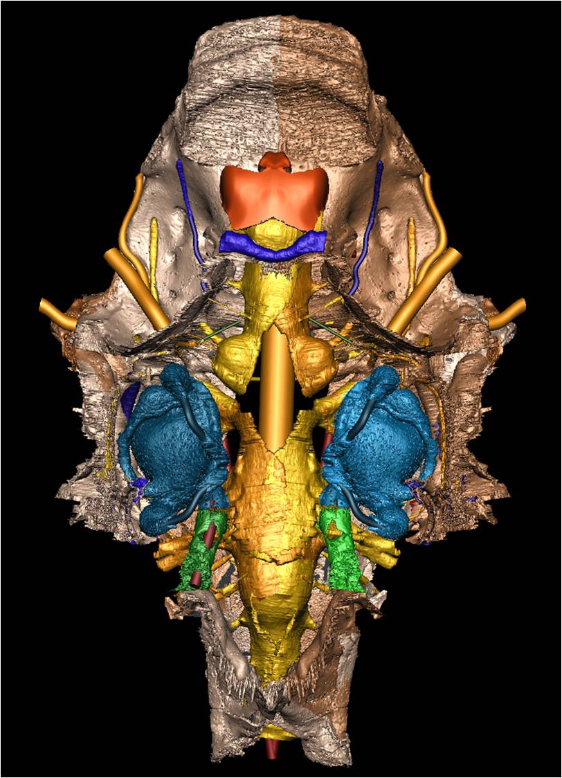 Romundina is an acanthothoracid placoderm found in Prince of Wales Island, Canada. The re-study of the holotype specimen using SR-CT reveals its exquisitely preserved inner structures, which hold significant meaning on the study of the origin of gnathostomes facial characters.