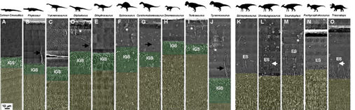 Internal tooth microstructures of various dinosaur genera