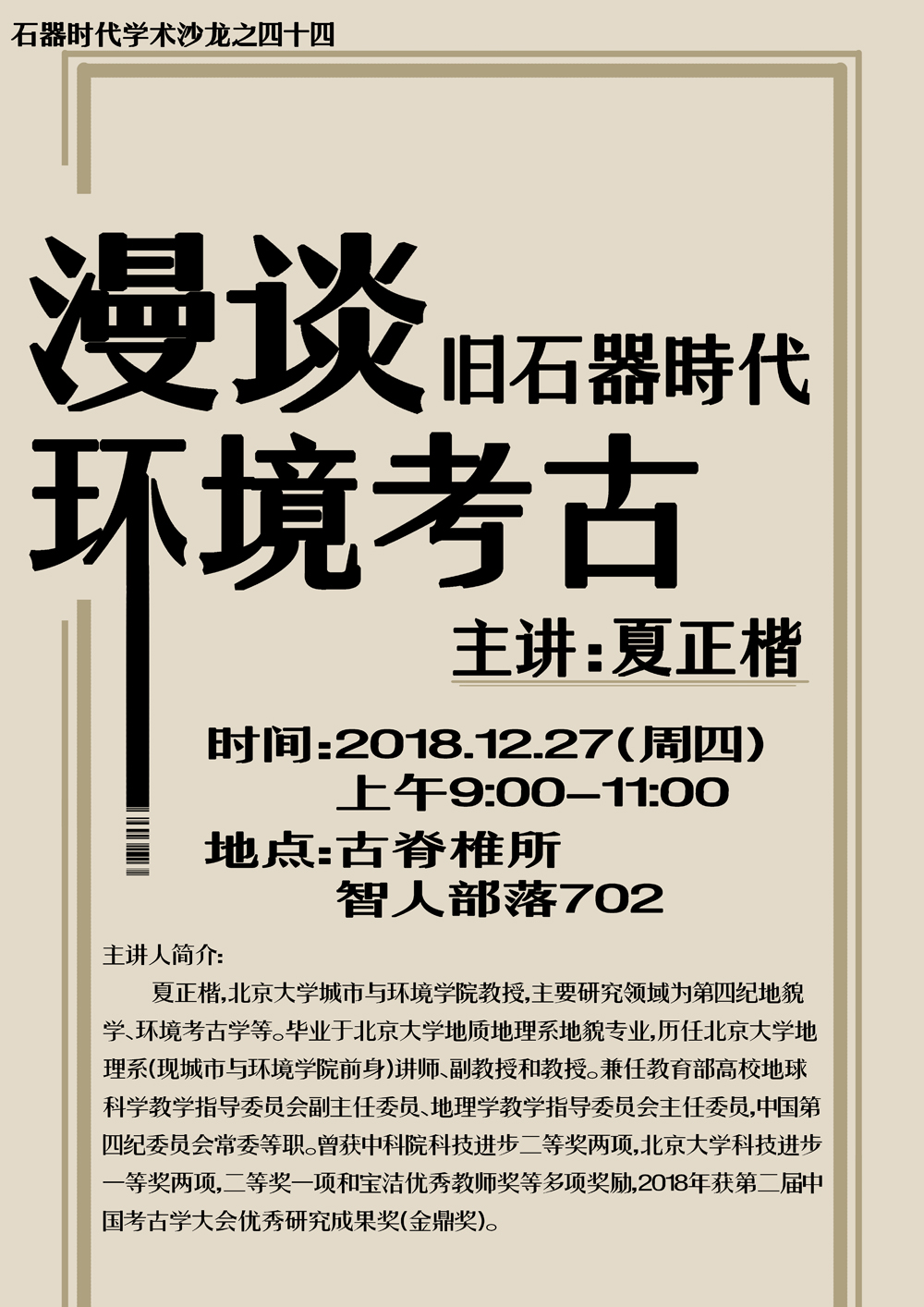 石器时代学术沙龙之四十四——漫谈旧石器时代环境考古