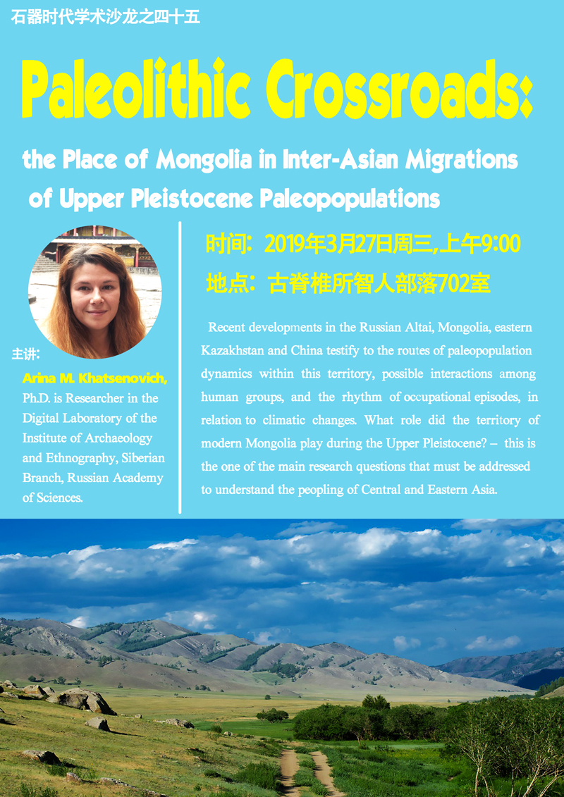 石器时代学术沙龙之四十五——Paleolithic Crossroads: the Place of Mongolia in Inter-Asian Migrations of Upper Pleistocene Paleopopulations