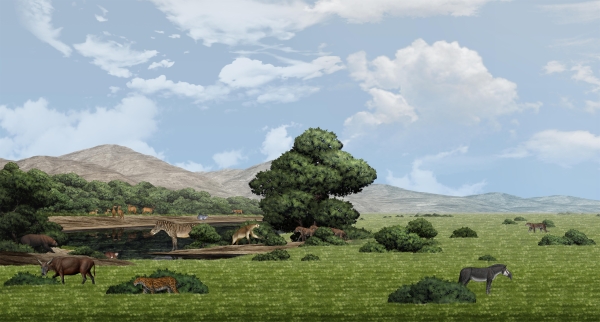 在55 Ma的演化史中,马科动物的齿冠逐渐增高,体型增大,且趾数减少。这些演化趋势皆与马科动物的摄食行为和栖息环境等古生态面貌密切相关。本研究以十里墩动物群中共生的三种三趾马和龙担动物群中共生的两种马科动物为重点研究对象,对两个动物群开展了哺乳动物牙釉质的碳氧同位素分析。研究发现两个动物群中不同种类的三趾马之间清晰的生态位差异,尤其是同属于长鼻三趾马亚属的两个种Hipparion pater和Hipparion sinense在上新世和更新世早期都有显著最高的δ13C值,与其他所有类群的数值都存在统计学上极显著的差异,说明其占据着最开阔的环境,以粗糙的草类资源为食。通过对比冠高指数、褶皱频率和体重等形态学参数,我们发现H. pater和H. sinense在各自生活的时期都是形态上相对最进步的种类,二者的颊齿齿冠最高且褶皱复杂,体型巨大。长鼻三趾马亚属的古生态,与以往根据其鼻吻部特征推测的沼泽森林型生态位相悖,证明马科动物鼻吻部的特征可能跟摄食行为关联不大。