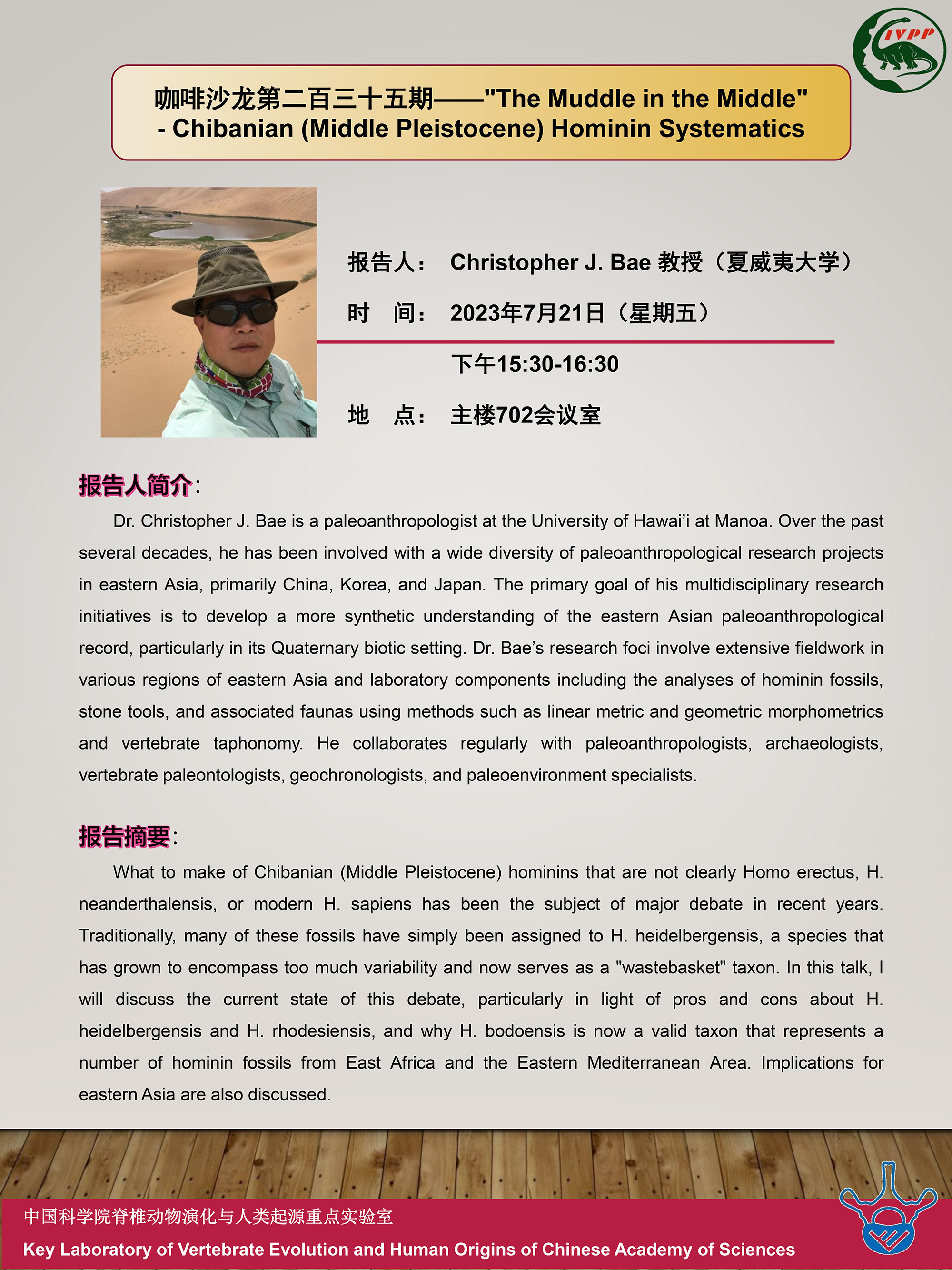 咖啡沙龙第二百三十五期——"The Muddle in the Middle"- Chibanian (Middle Pleistocene) Hominin Systematics