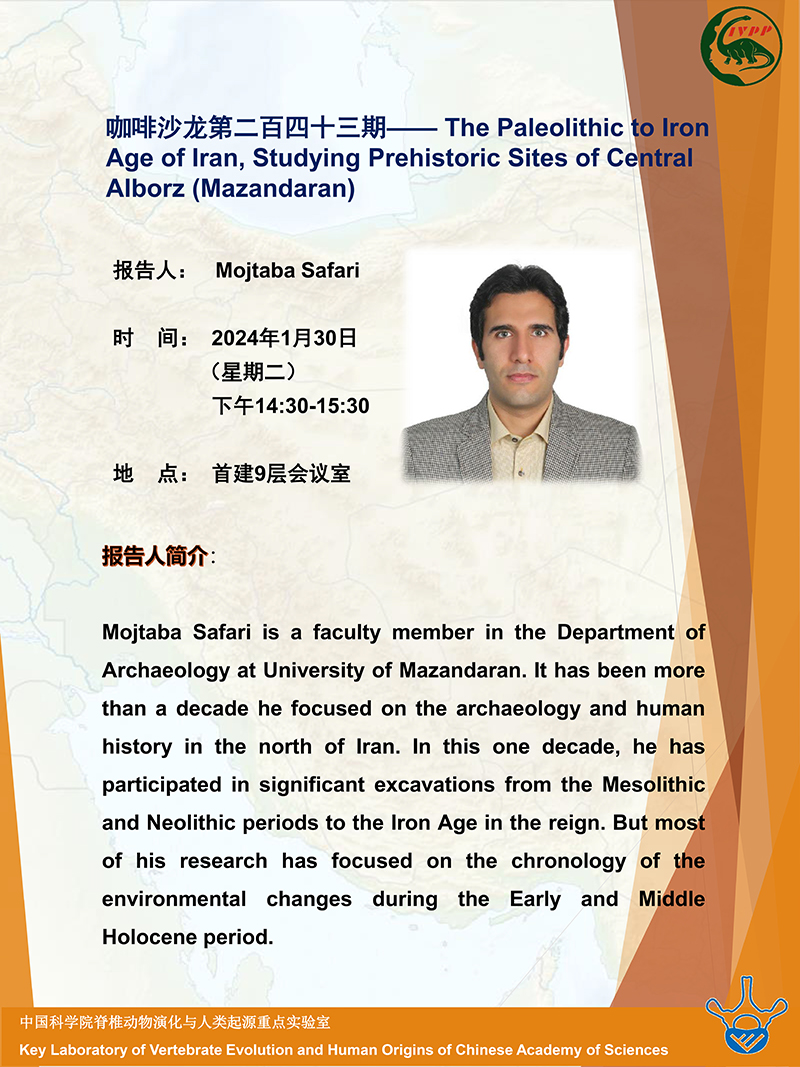 咖啡沙龙第二百四十三期—— The Paleolithic to Iron Age of Iran, Studying Prehistoric Sites of Central Alborz (Mazandaran) 和 Analysis settlement patterns of prehistoric sites of South Caspian Sea (Mazandaran province), Iran
