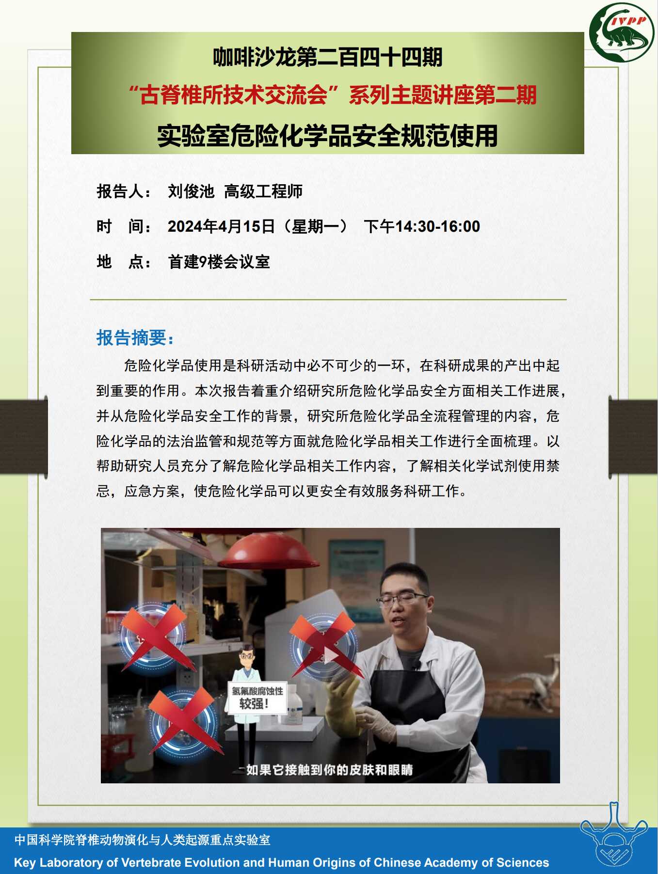咖啡沙龙第二百四十四期——“古脊椎所技术交流会”系列主题讲座第二期——实验室危险化学品安全规范使用
