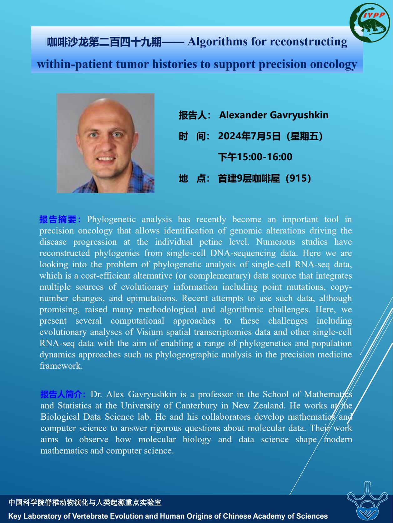 咖啡沙龙第二百四十九期—— Algorithms for reconstructing within-patient tumor histories to support precision oncology