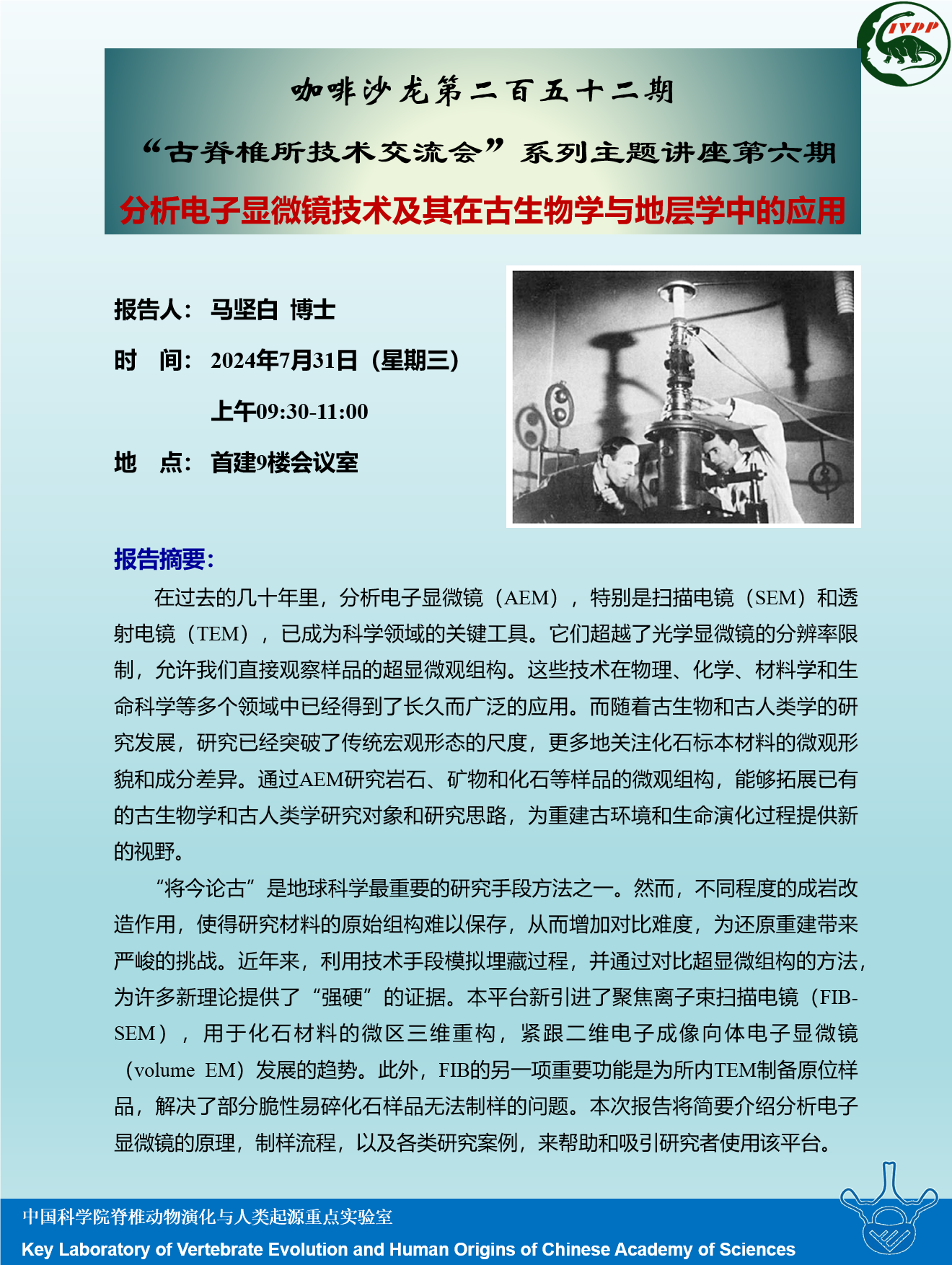 咖啡沙龙第二百五十二期——“古脊椎所技术交流会”系列主题讲座第六期——分析电子显微镜技术及其在古生物学与地层学中的应用