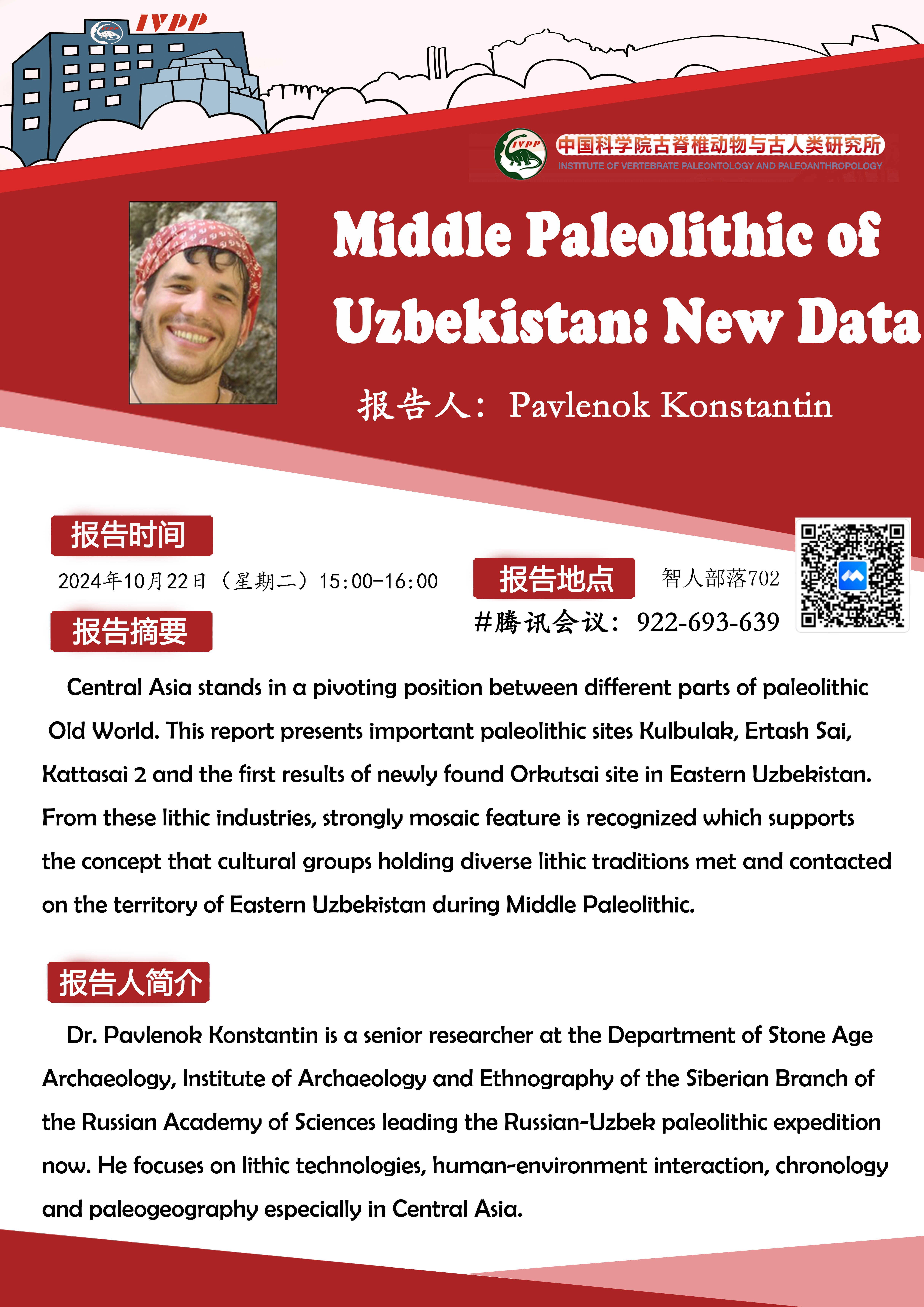 学术报告“将断裂力学与机器学习引入石器研究:从实验中获得新见解” “Middle Paleolithic of Uzbekistan: New Data”