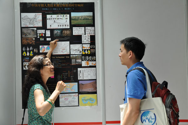 三天的会议中,9位专家围绕“深海研究与地球系统科学”进行跨学科的大会综述;九场专题研讨,由63位专家就不同专题做口头报告;因参会人数超出预期,更多代表则由会议安排为三场展板交流,共有一百余篇论文的作者通过展板和与会者讨论交流。在“生命与环境的演变过程”专题中,我所黄慰文教授在会上同地质与地球物理研究所袁宝印教授联合做了以新生代天文地质事件与早期人类进化关系为核心的报告,引起了地球科学领域其他学科学者们的广泛关注。侯亚梅研究员在展板交流中带去了以《中国早期人类技术圈层辐射的时空响应》为题的专题展板,汪品先院士等多人前来与之展开讨论、交流。
