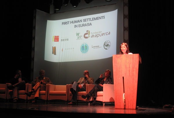 2010年10月8日-10日,“欧亚大陆最早的人类定居点”国际学术会议在上海世博园西班牙馆召开。本次会议由西班牙国际展览署与阿塔普埃尔卡基金会主办,西班牙国家人类进化研究中心、西班牙洛维拉维吉利大学人类古生态学与进化社会学研究所、中国科学院古脊椎动物与古人类研究所、UCM/ISCⅢ进化与人类行为联合研究中心、上海复旦大学生命科学学院现代人类学教育部重点实验室、西班牙国家国际展览署等单位联合协办。来自西班牙、中国、法国、英国、意大利、美国、以色列、格鲁吉亚的近40位古人类学、旧石器考古学、古生态学、古哺乳动物学等领域的专家学者与会。在8日的开幕式上,世博会西班牙馆代表西班牙馆馆长玛莉亚?蒂娜女士、会议组织者代表西班牙国家人类进化研究中心(IPHES)Eudald Carbonell教授和中方代表中国科学院古脊椎动物与古人类研究所侯亚梅研究员先后致辞(图1)。