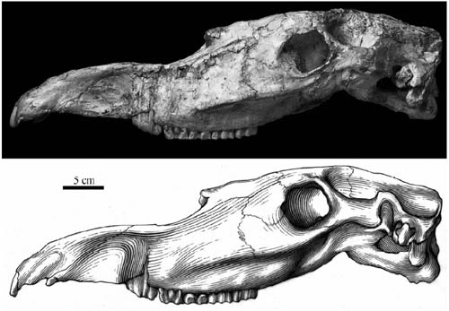 图1:长鼻三趾马头骨(HMV1872),侧视。(邓涛供图)