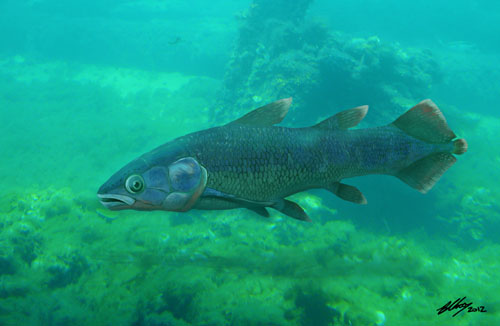 最早的现代型空棘鱼——云南孔骨鱼复原图(古脊椎所Brian Choo绘)