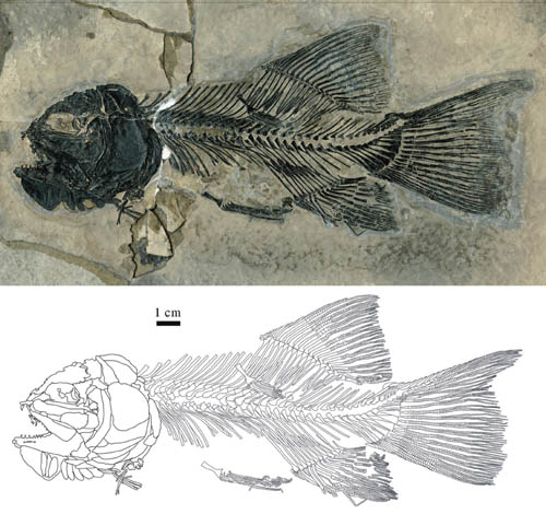 中国科学院古脊椎动物与古人类研究所金帆研究员和研究生谭锴报道并系统描述了云南省曲靖地区罗平县大凹子村中三叠世关岭组二段发现的金尾鱼类新材料-意外裸鱼(Gymnoichthys inopinatus),并重新讨论了其系统发育关系,为中三叠世动物地理分布以及金尾鱼类生活习性的演变研究提供依据。2013年1月出版的《古脊椎动物学报》(51卷1期)刊发了该项研究成果。