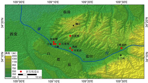 2009-2011年,中国科学院古脊椎动物与古人类研究所、南京大学和陕西省考古研究院等单位在陕西蓝田灞河右岸阶地顶部的黄土地层中新发现8处旷野类型旧石器地点,采集石制品770件。研究表明,蓝田地区除存在以前认识比较充分的早更新世晚期到中更新世阶段的古人类旧石器地点之外,在灞河流域河流阶地黄土地层中还普遍埋藏有晚更新世阶段的旧石器遗存,这些遗址采取硬锤直接打击法和砸击法技术剥取石片;加工石制品的原料以来自于河流沉积物中的石英岩、石英、石英砂岩和火山岩砾石为主;石制品中既包含直接由砾石和大型石片加工而成的重型工具,如砍砸器、重型刮削器、手斧、手镐、薄刃斧和石球等,同时也含有一些小型石片和由小型石片修理而成的刮削器和尖状器等小型工具。