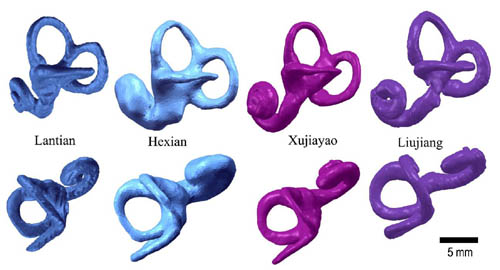 这个由中国科学院古脊椎动物与古人类研究所研究员吴秀杰负责的研究小组利用高分辨率工业CT技术,复原出中国早更新世公王岭蓝田直立人、中更新世和县直立人、晚更新世许家窑早期智人和柳江人的三维内耳迷路,初步揭示了东亚地区更新世古人类内耳迷路的形态。